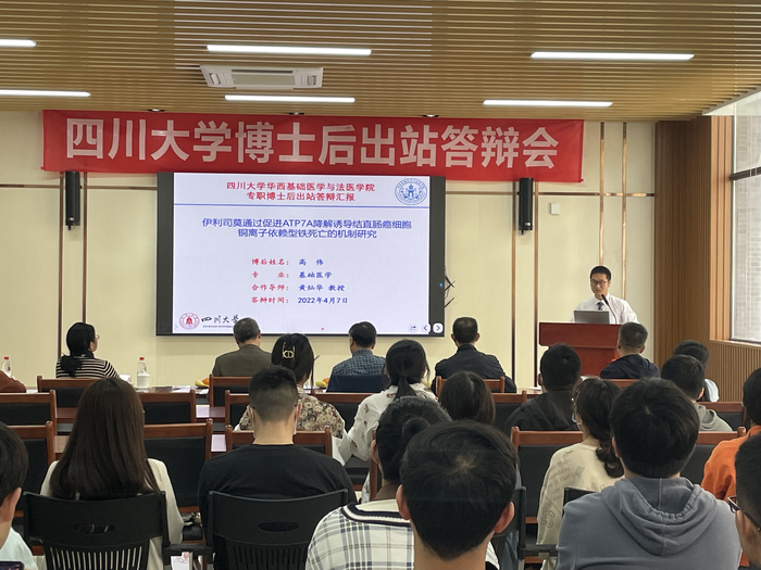 2022.04.08 Gao Wei post-doctoral defenseOn the afternoon of April 7, 2022, Gao Wei, a postdoctoral fellow in our room, conducted a postdoctoral defense in the large conference room on the first floor of the Science and Education Building of the State Key Laboratory of Biotherapy of Sichuan University. The defense members included Professor Li Changlong of West China School of Basic Medicine and Forensic Medicine of Sichuan University, Professor Xie Ke of Sichuan Provincial People's Hospital, Professor Han Junhong of the State Key Experiment of Biotherapy of Sichuan University, Professor Xiao Hengyi of West China Hospital of Sichuan University, and Professor Liu Xiaoheng of West China School of Basic Medicine and Forensic Medicine of Sichuan University. The defense members spoke highly of Gao Wei's achievements and dedication during his work. After the resolution of the defense committee, they unanimously agreed to Gao Wei's postdoctoral defense.