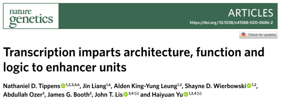 Cancer Cell+Nature Genetics | 大象有形——梁晗组和于海源组分别揭示增强子的转录本质转录调控(transcription regulation)是分子生物学核心大课题——基因调控的首要层级,也是最早受到关注和研究得最为透彻的分支。超过半个世纪的知识积累建构了一个由顺式调控元件(cis-regulatory element)和反式作用因子(trans-acting factor)两大要素相互作用形成的转录调控框架【1,2】。在组成结构上,前者主要包括启动子、增强子和沉默子等非编码DNA序列;而后者则包含RNA聚合酶、转录因子、染色质重塑因子(chromatin remodeler)、甚至是一些RNA结合蛋白(RNA binding protein, RBP)等【3】。在行为逻辑上,顺式元件所蕴含的内在序列特征(intrinsic sequence pattern)往往直接决定了反式因子的结合与作用模式,而反式因子在不同生物场景下的差异性行为也能够反过来影响顺式元件的激活,因而构成了类似“鸡”与“蛋”的相辅相成的复杂逻辑【4】。 ![]() 尽管转录调控机制的大体面貌已经相对明晰,但其中的若干基本环节依然有很大的修正空间,诸多具体细节也仍待厘清。例如,近年来的一系列重要研究表明:启动子核心序列(core promoter sequence)所控制的基因转录经常是异向同时存在的(divergent transcription)【5】、RNA转录酶从转录起始位点起始后并非连贯作用,而是会在启动子下游发生短暂停滞【6】、5端外显子RNA的剪接能够直接增强基因的转录强度【7】等。